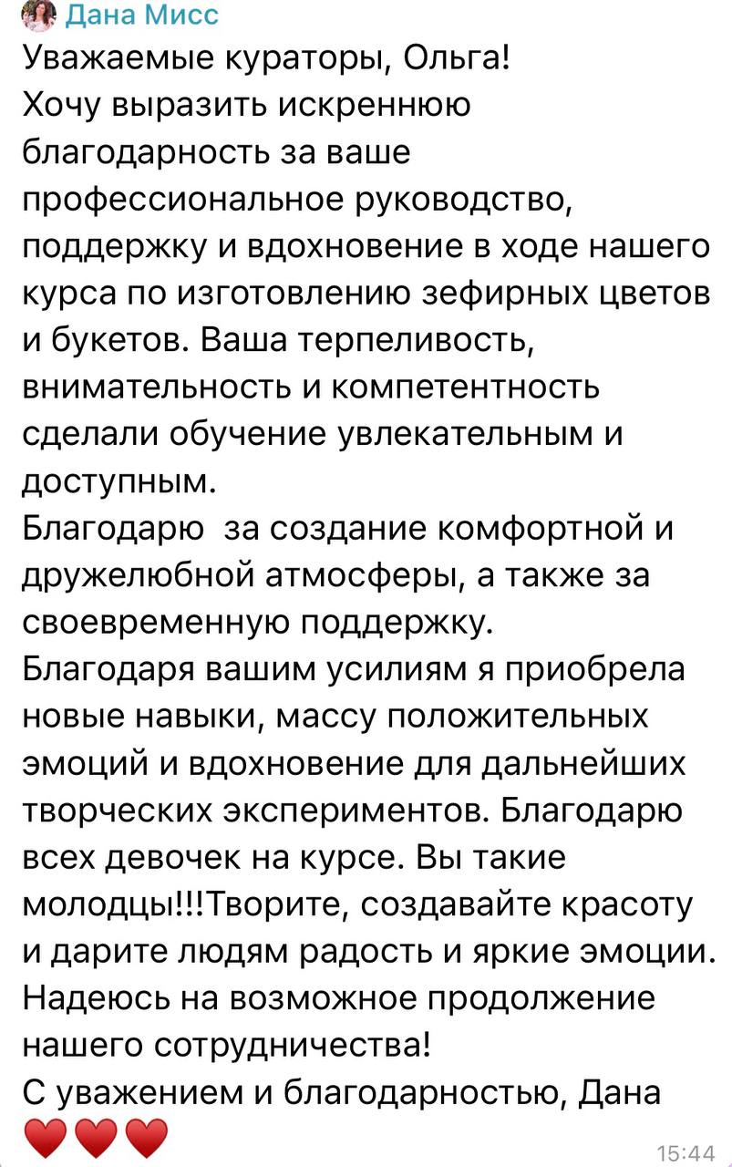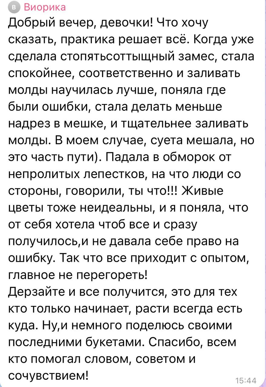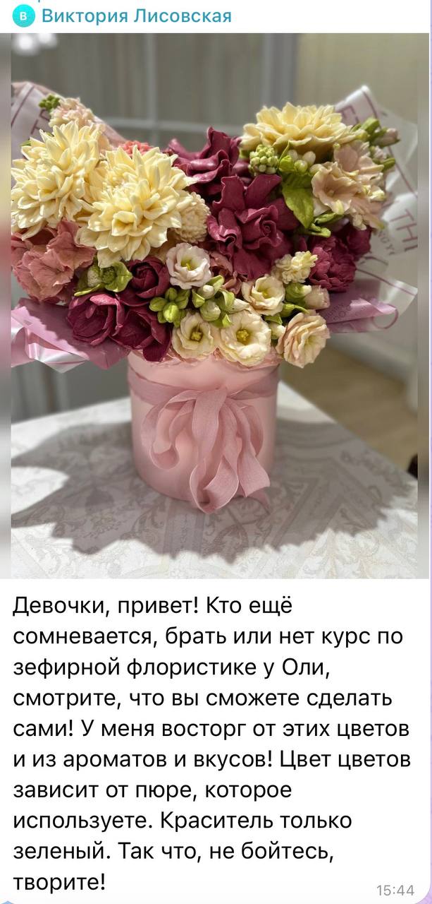 За последний год я приложила много усилий для роста ниши зефирной флористики молдами, и сейчас мне хочется, чтобы новые ученики могли создавать реалистичные и красивые букеты с моими новыми знаниями и опытом
