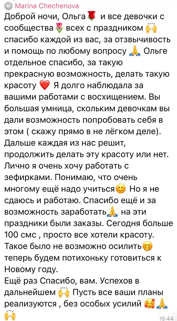 После курса участники тарифа 3 и 4 т.е те, кто изучил профессию зефирного флориста получают доступ к моему Зефирному Сообществу и аккаунту учеников